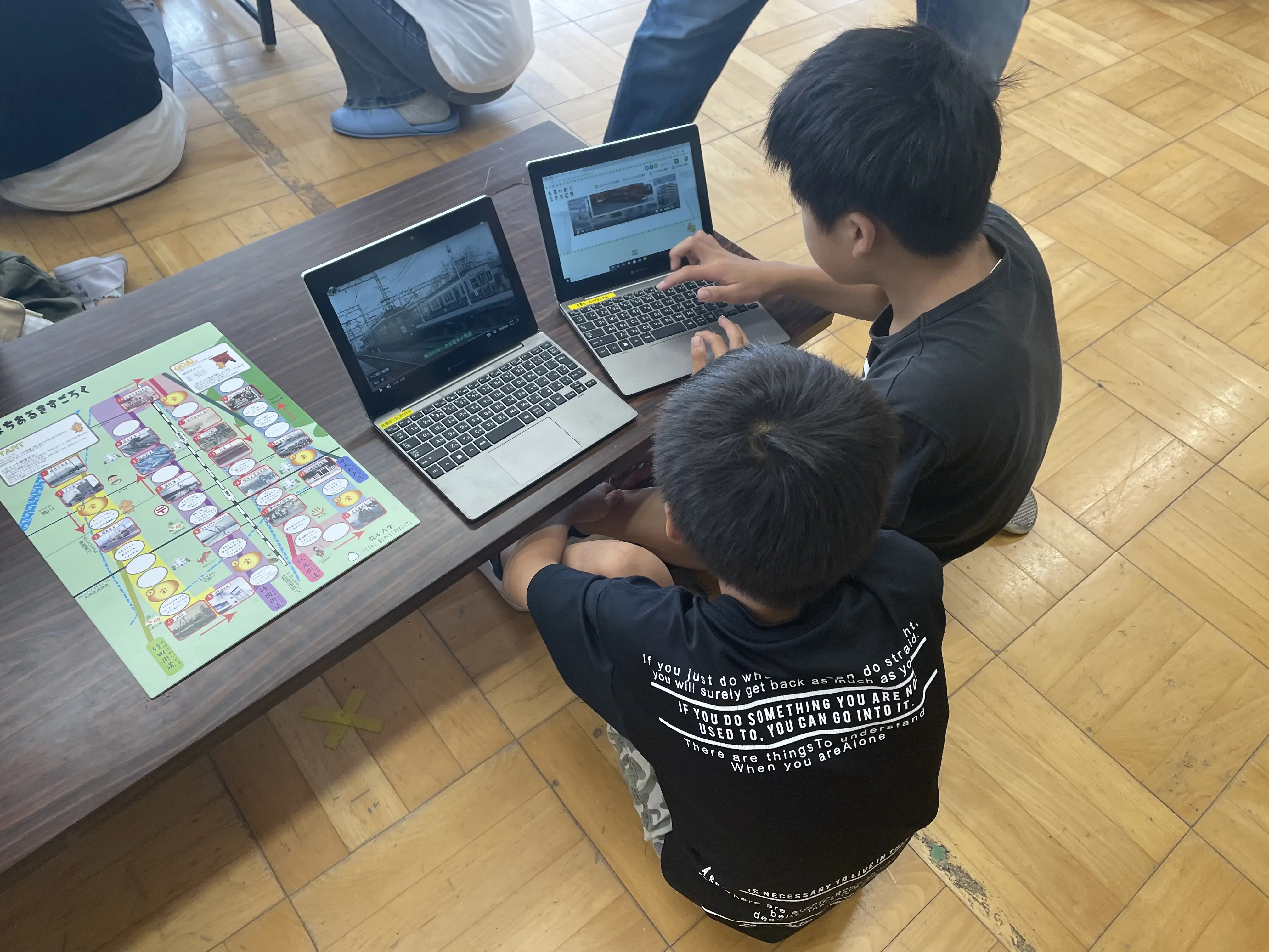 近隣の小学校と連携し、「深草アーカイブ」を活用しながら遊びを通じて深草の歴史を継承する活動を行っています。2023年度は、深草各所の「まちあるき」と「すごろく」を組み合わせた活動や、「深草アーカイブ」を使用した取り札と小学生考案の読み札による「深草今昔かるた」などを実施しました。また、伏見区が主催する市民講座「伏見連続講座」に登壇し、本取組について紹介しました。