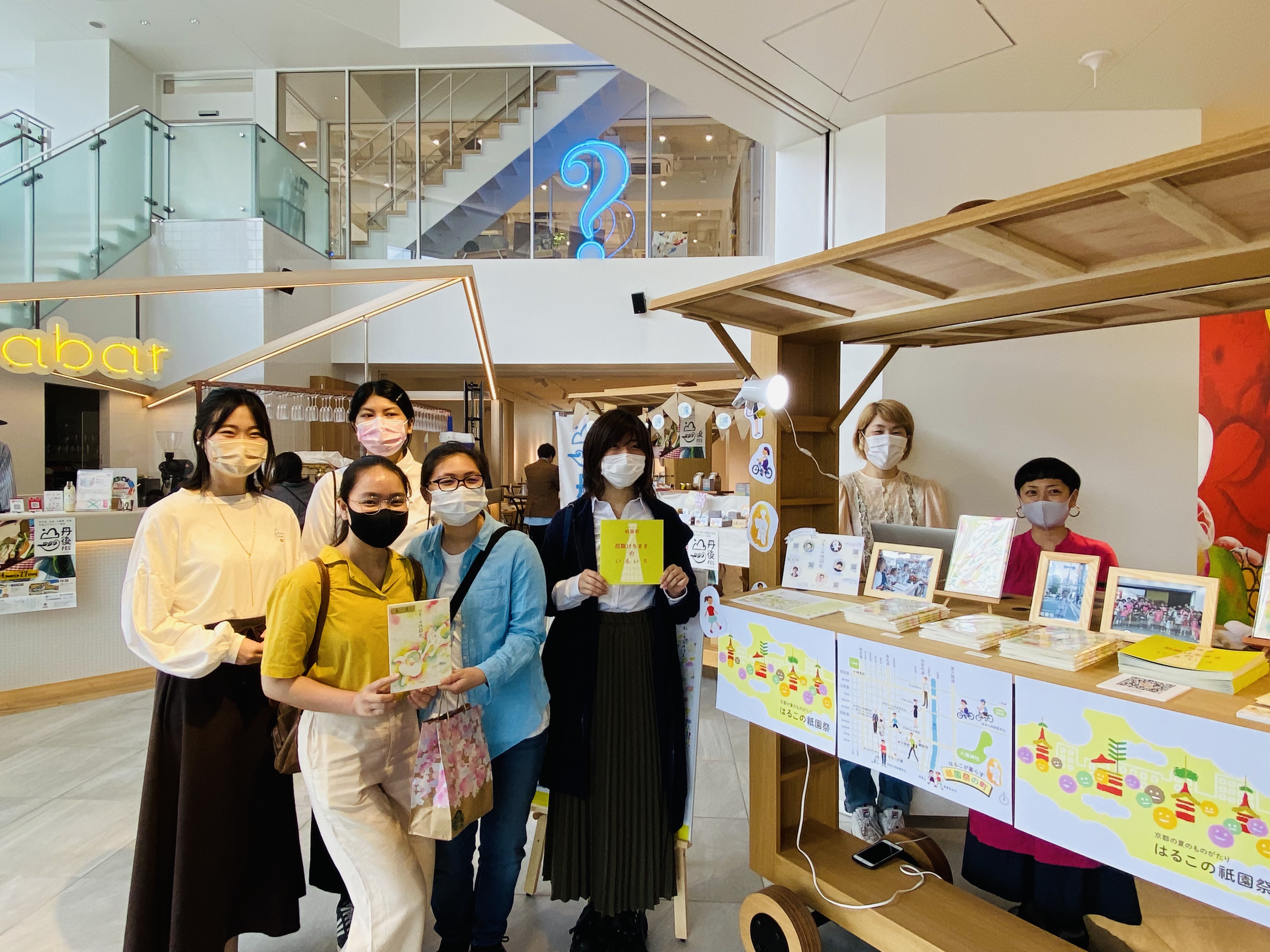 祇園祭に親子で参加することをサポートする取組である「こどもステーション(祇園祭期間中に授乳、オムツ替え、ベビーカーの預かりをする仮設スペース)」の運営を通じて学びを提供する予定でした。しかしながら、新型コロナウイルス感染症の影響によって、祇園祭および「こどもステーション」の実施が困難であったことから、書籍『はるこの祇園祭』の周知と原画展が行われた一乗寺の恵文社界隈におけるフィールドワークを行いました。