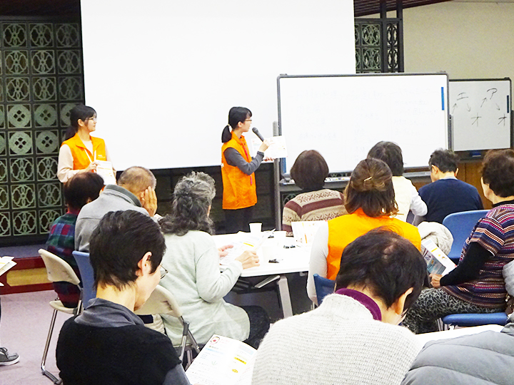 大学での介護予防サロンに、介護予防サポーターを含めた地域の高齢者が参加され、内容を地域に持ち帰って伝達してもらうことで、より多くの方への啓蒙活動が可能になった。
